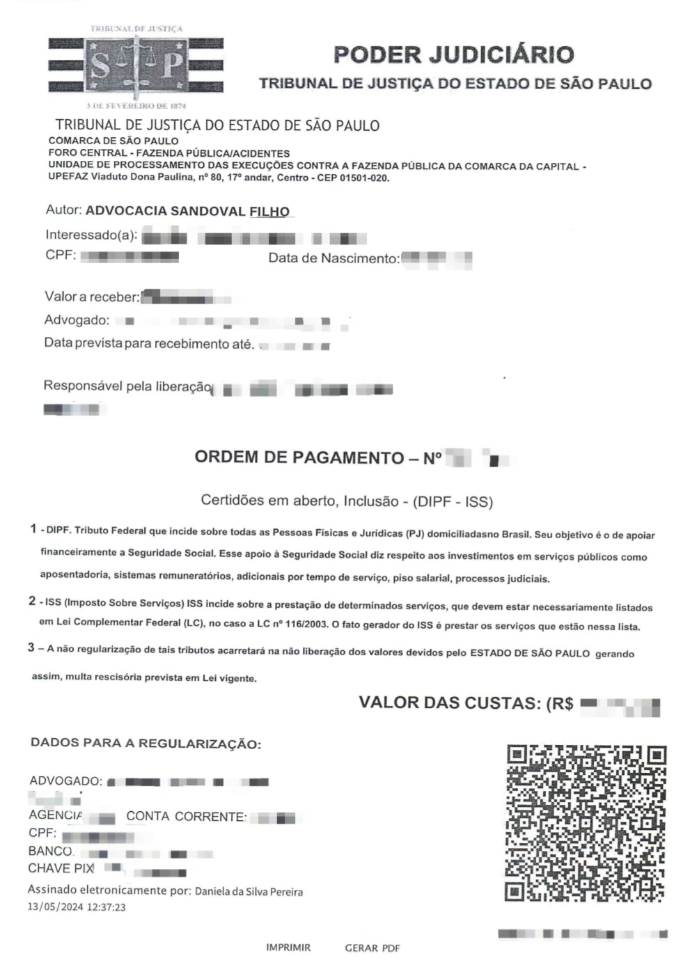É importante lembrar que não é necessária nenhuma antecipação para receber seu precatório. Sempre que o credor receber um pedido de qualquer valor, pode estar certo de que é golpe. Qualquer solicitação desse tipo deve ser recusada imediatamente. Fique atento e sempre consulte diretamente o seu advogado.