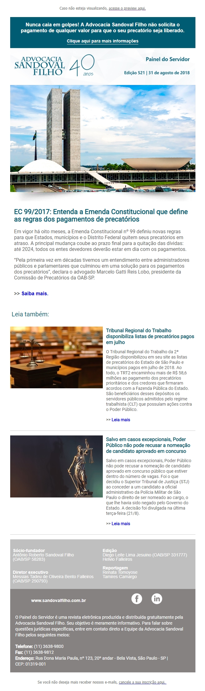 Confira a edição nº 521 do Painel do Servidor, enviada no dia 31 de agosto de 2018.