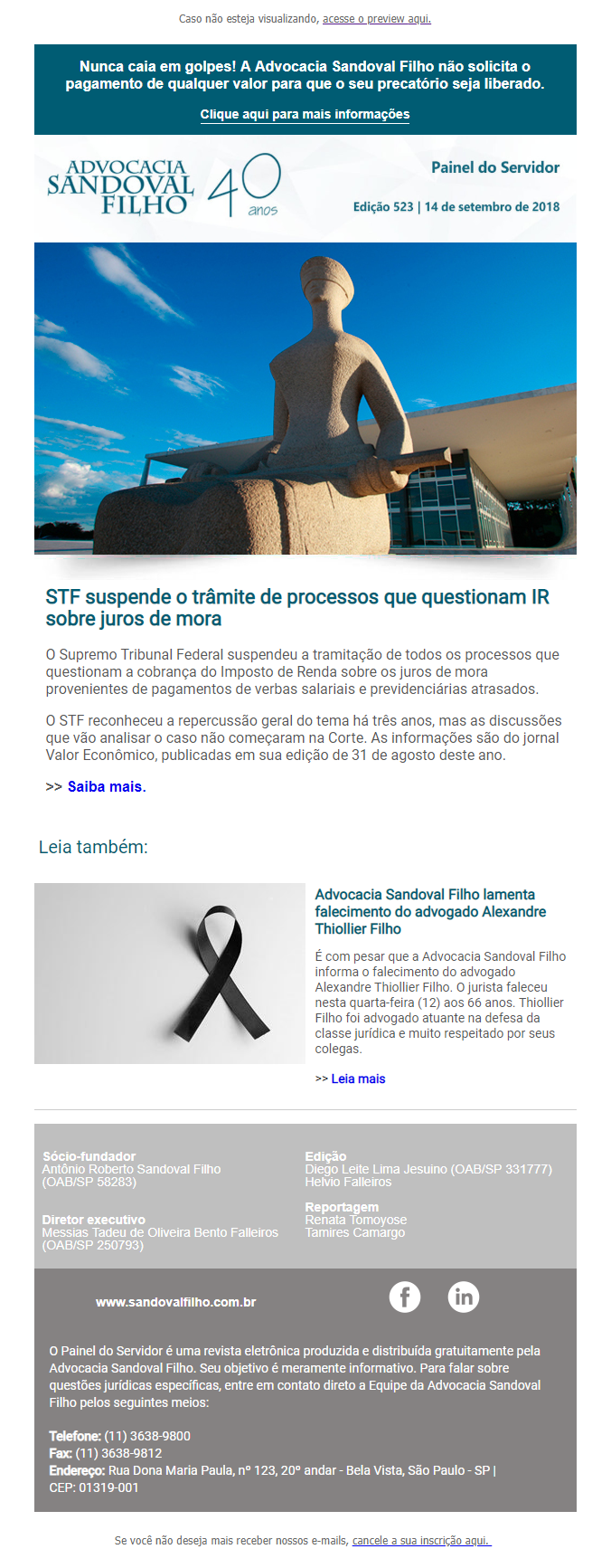 Confira a edição nº 523 do Painel do Servidor, enviada no dia 14 de setembro de 2018.