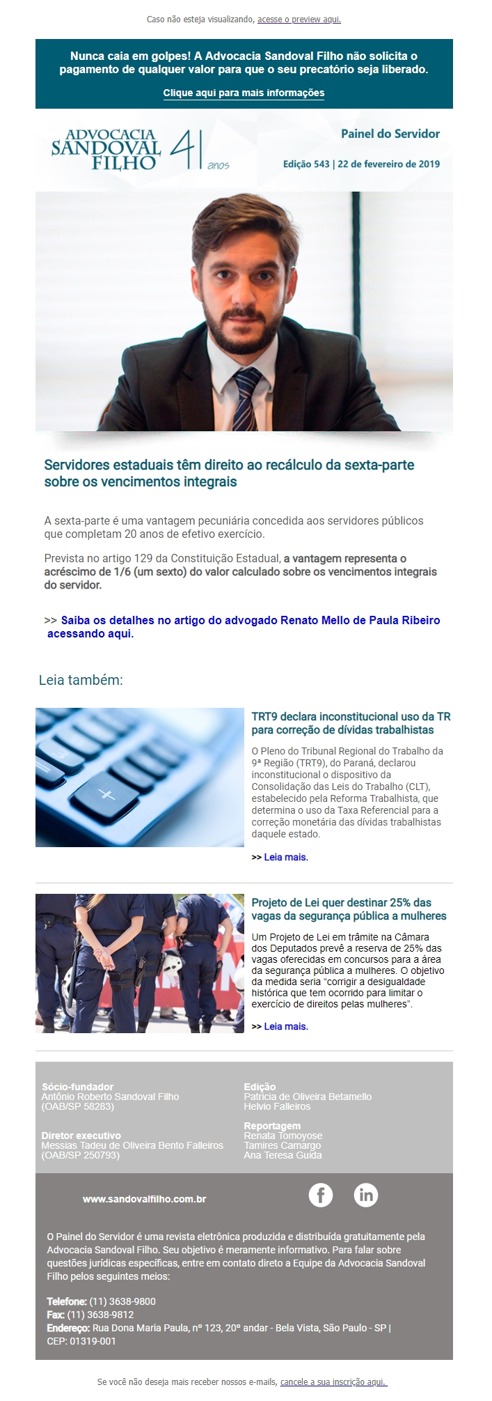 Confira a edição nº 543 do Painel do Servidor, enviada no dia 22 de fevereiro de 2019.