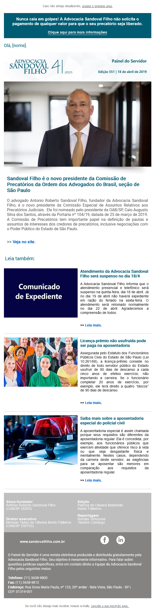 Nunca caia em golpes! A Advocacia Sandoval Filho não solicita o pagamento de qualquer valor para que o seu precatório seja liberado.