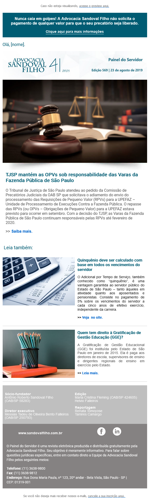 Confira a edição nº 569 do Painel do Servidor, enviada no dia 23 de agosto de 2019.