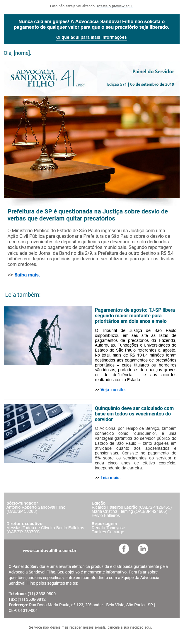 Confira a edição nº 571 do Painel do Servidor, enviada no dia 6 de setembro de 2019.
