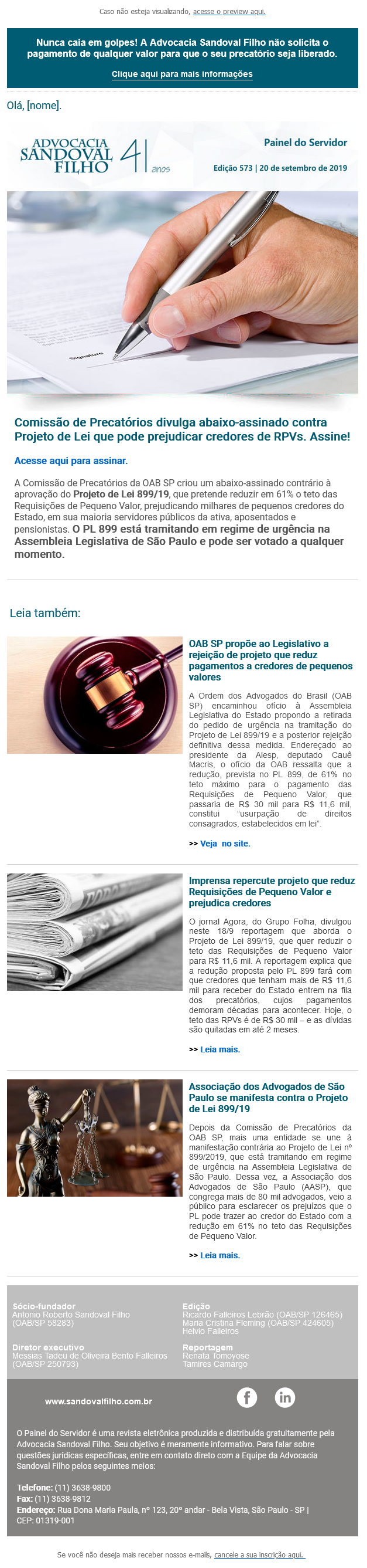 Confira a edição nº 573 do Painel do Servidor, enviada no dia 20 de setembro de 2019.