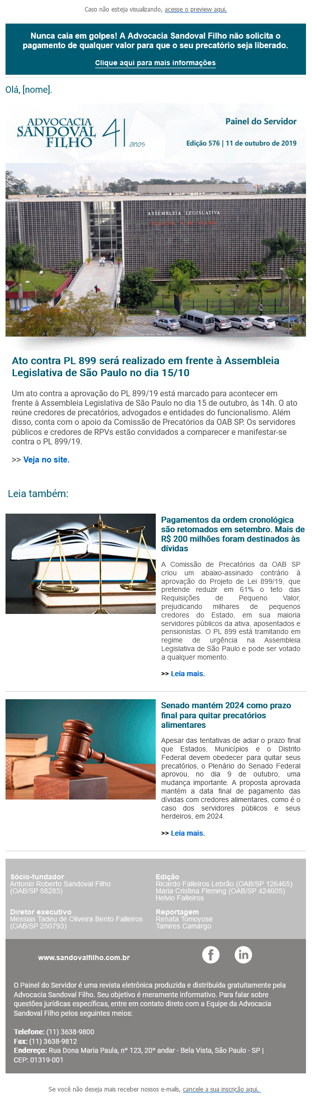 Confira a edição nº 576 do Painel do Servidor, enviada no dia 11 de outubro de 2019.