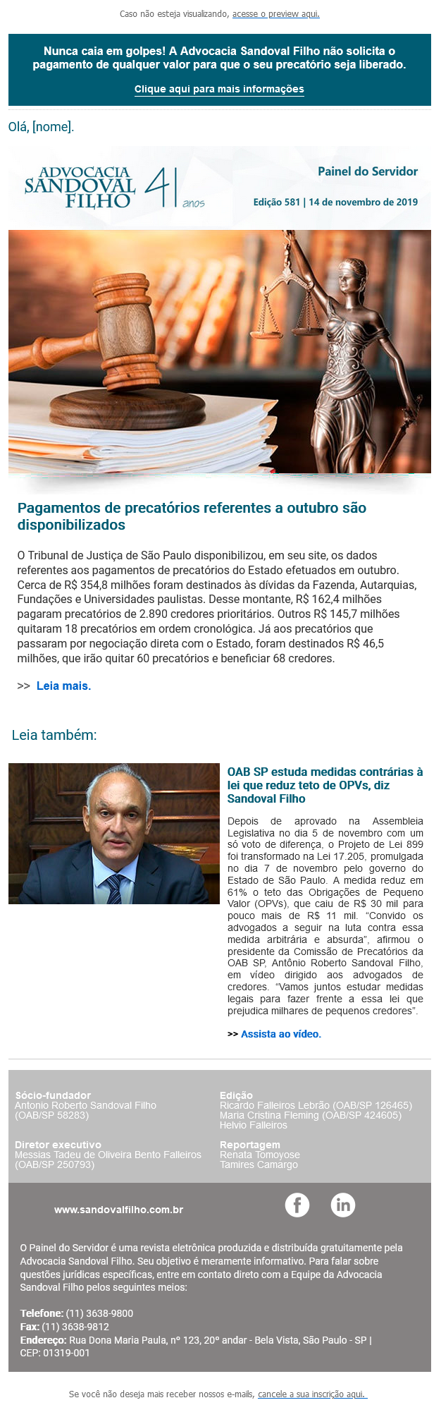 Confira a edição nº 581 do Painel do Servidor, enviada no dia 14 de novembro de 2019.
