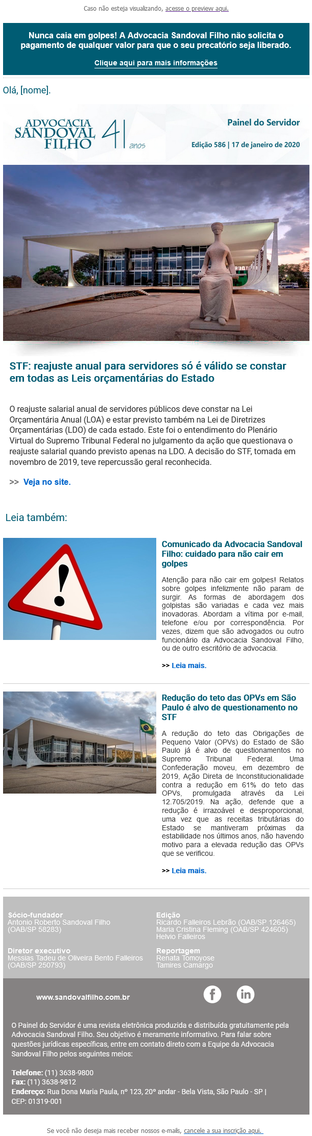 Nunca caia em golpes! A Advocacia Sandoval Filho não solicita o pagamento de qualquer valor para que o seu precatório seja liberado.