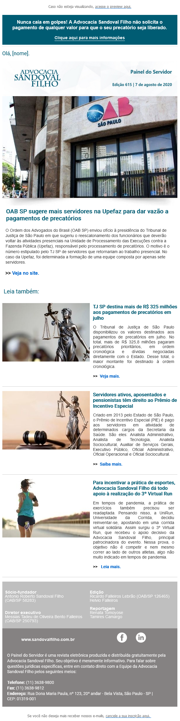 Confira a edição nº 615 do Painel do Servidor, enviada no dia 7 de agosto de 2020.