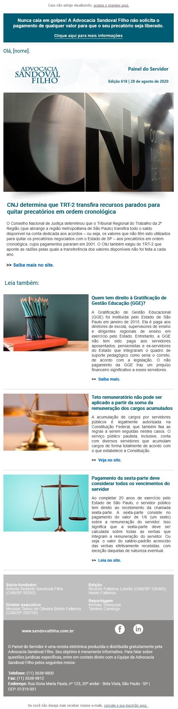 Confira a edição nº 618 do Painel do Servidor, enviada no dia 28 de agosto de 2020.