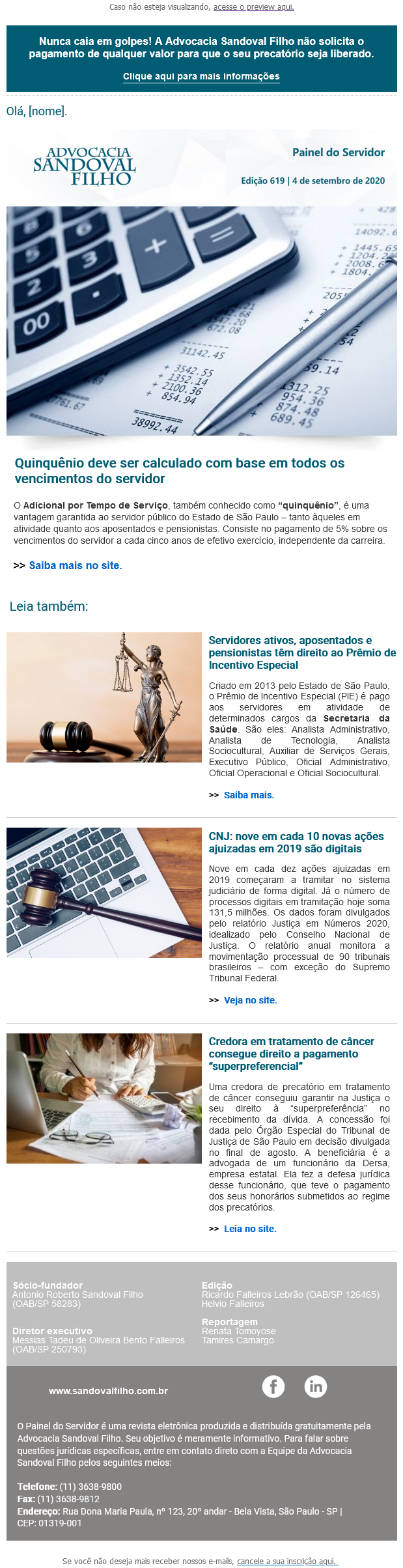 Confira a edição nº 619 do Painel do Servidor, enviada no dia 4 de setembro de 2020.