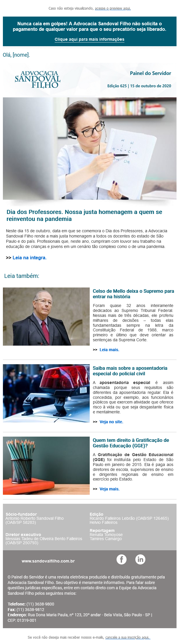 Nunca caia em golpes! A Advocacia Sandoval Filho não solicita o pagamento de qualquer valor para que o seu precatório seja liberado.