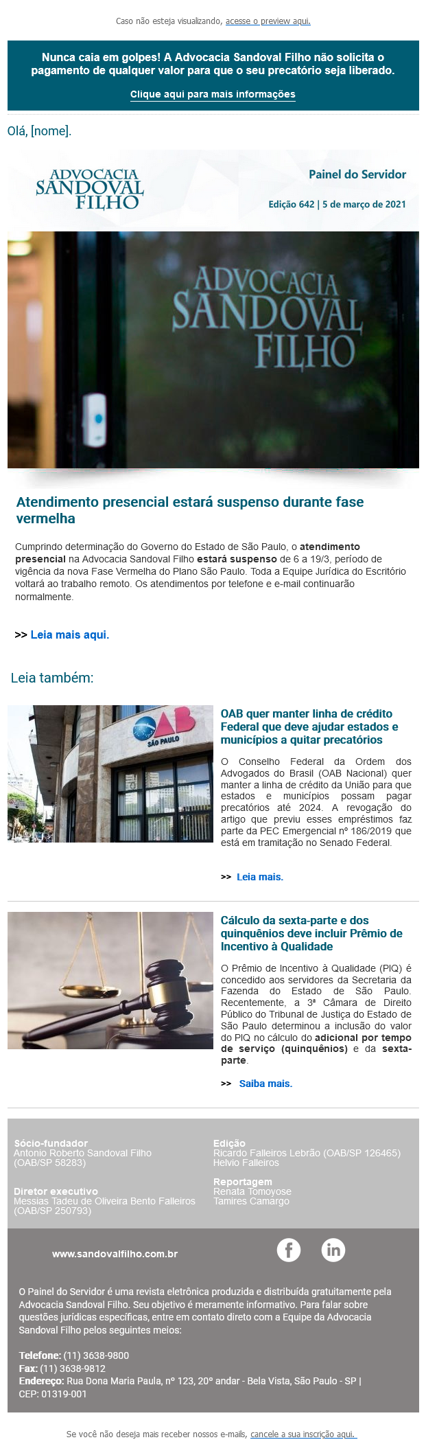 Confira a edição nº 642 do Painel do Servidor, enviada no dia 5 de março de 2021.