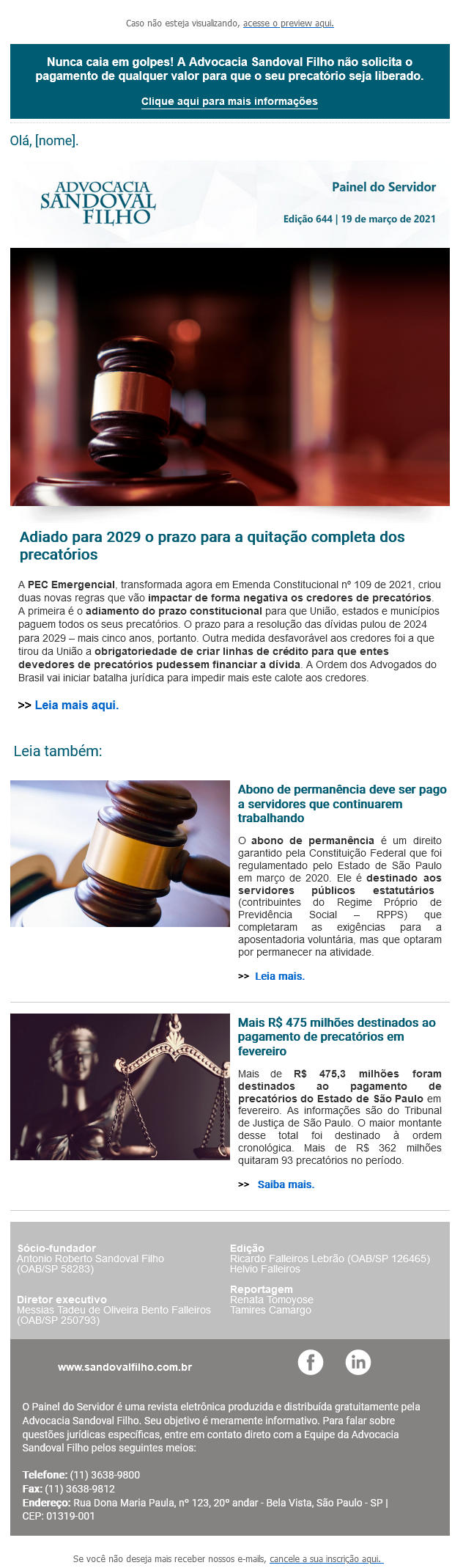 Confira a edição nº 644 do Painel do Servidor, enviada no dia 19 de março de 2021.