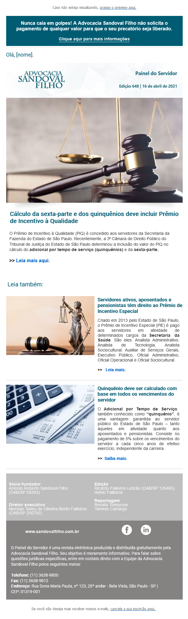 Confira a edição nº 648 do Painel do Servidor, enviada no dia 16 de abril de 2021.
