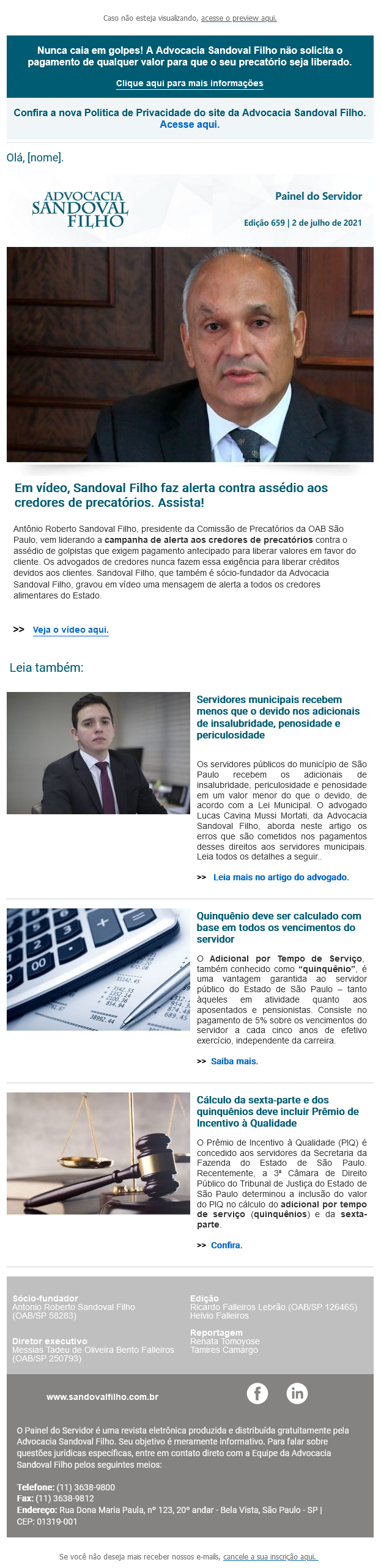 Nunca caia em golpes! A Advocacia Sandoval Filho não solicita o pagamento de qualquer valor para que o seu precatório seja liberado.