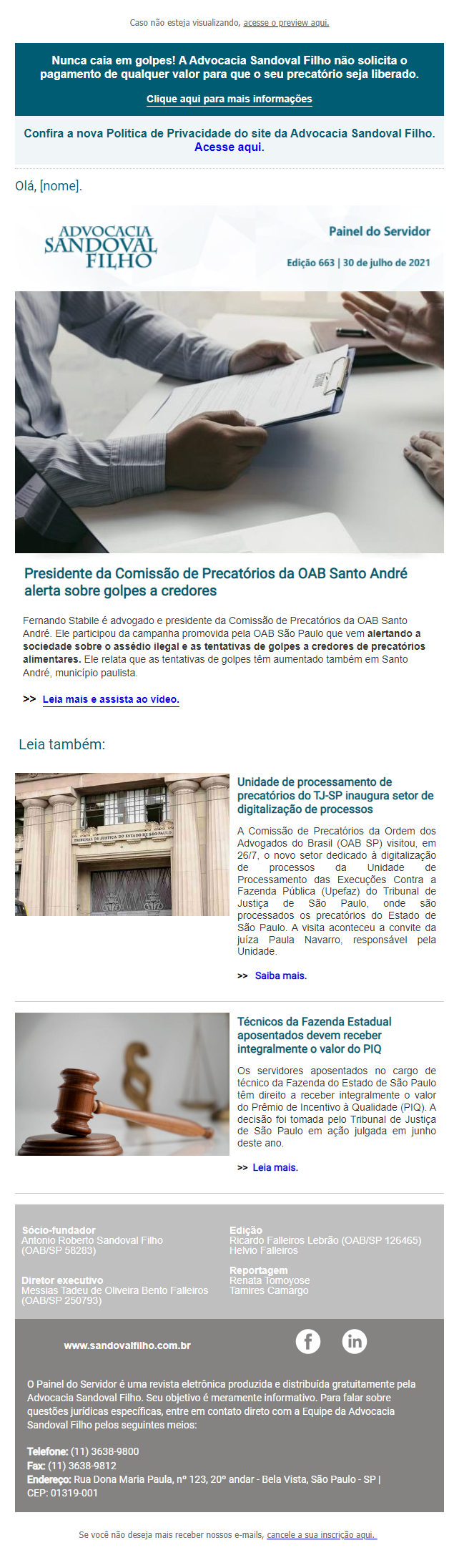 Confira a edição nº 663 do Painel do Servidor, enviada no dia 30 de julho de 2021.