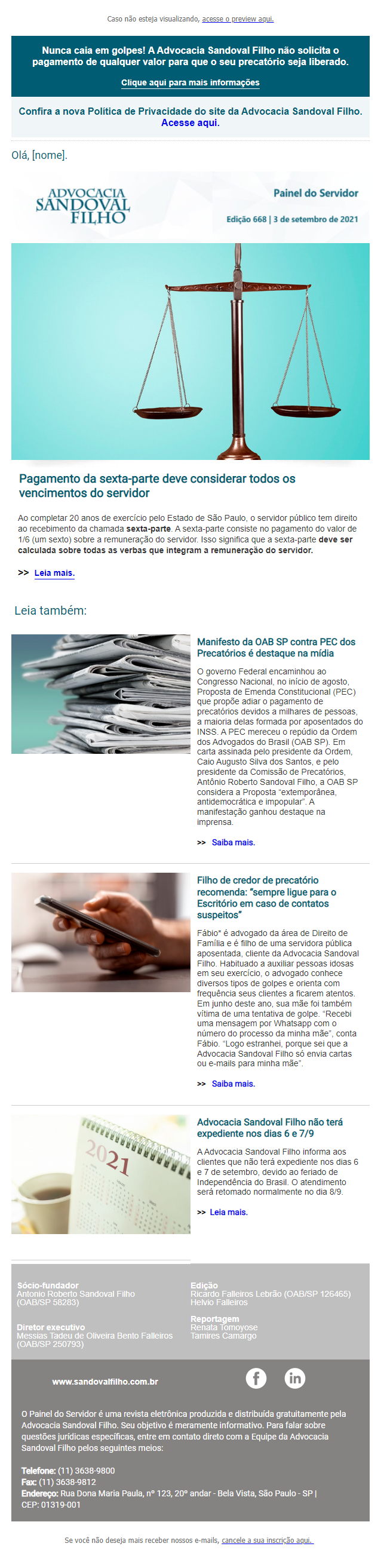 Nunca caia em golpes! A Advocacia Sandoval Filho não solicita o pagamento de qualquer valor para que o seu precatório seja liberado.