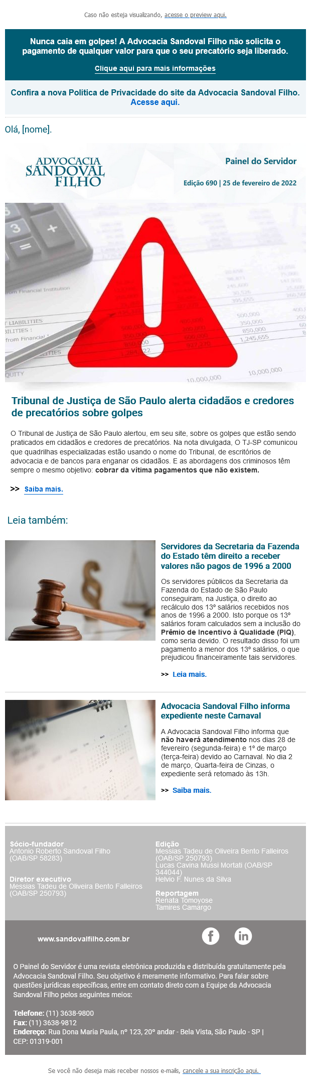 Confira a edição nº 690 do Painel do Servidor, enviada no dia 25 de fevereiro de 2022.