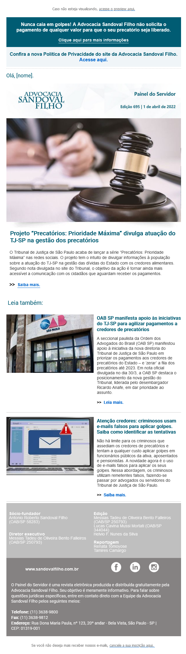 Confira a edição nº 695 do Painel do Servidor, enviada no dia 1 de abril de 2022.