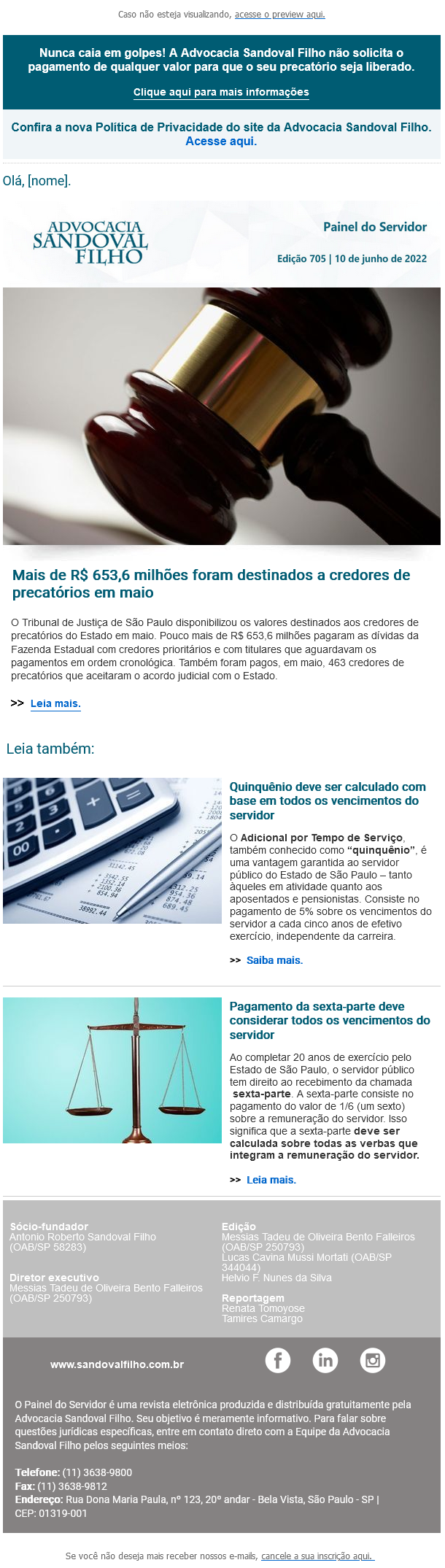 Confira a edição nº 705 do Painel do Servidor, enviada no dia 10 de junho de 2022.