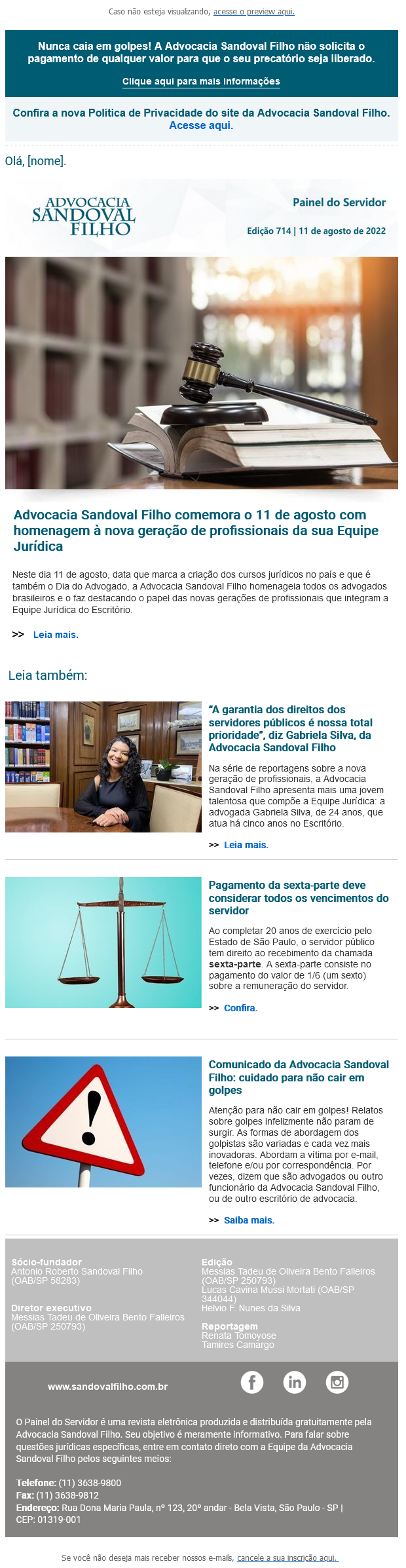 Confira a edição nº 714 do Painel do Servidor, enviada no dia 11 de agosto de 2022.