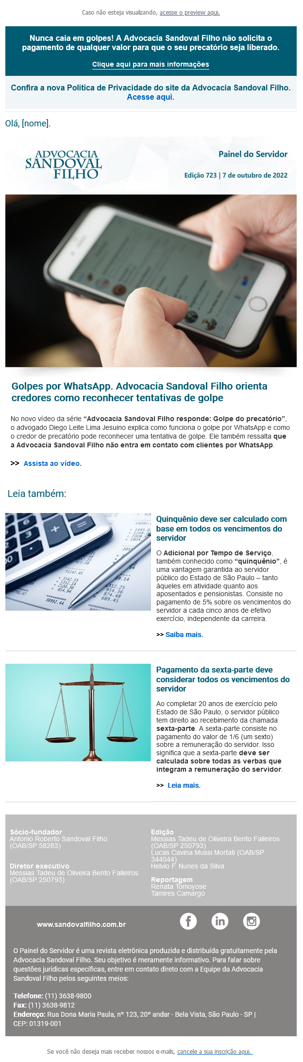 Confira a edição nº 723 do Painel do Servidor, enviada no dia 7 de outubro de 2022.
