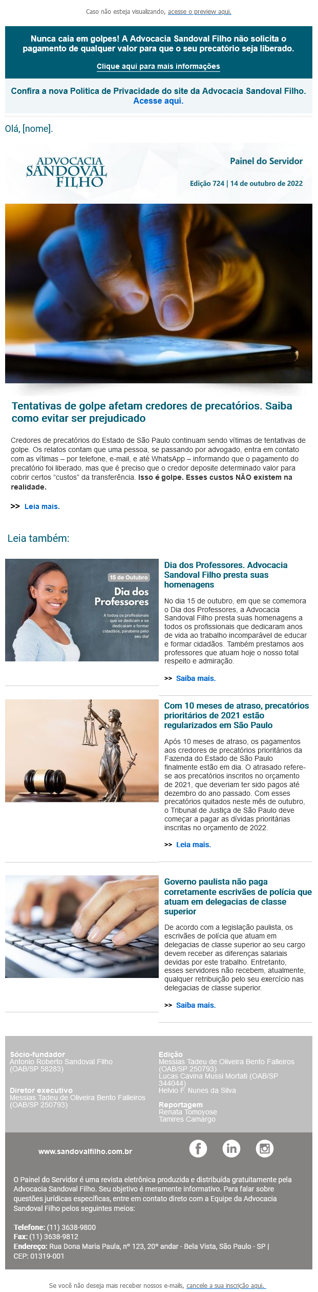 Confira a edição nº 724 do Painel do Servidor, enviada no dia 14 de outubro de 2022.
