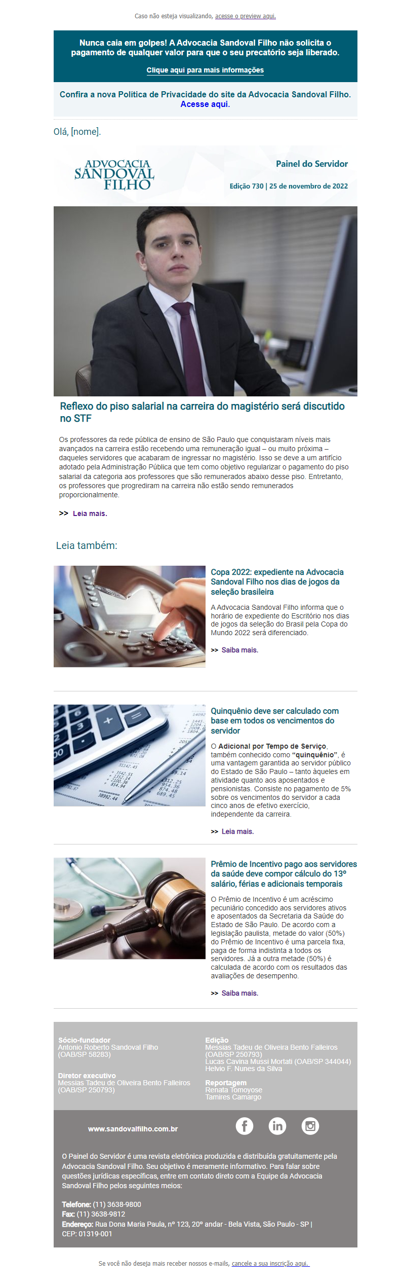 Confira a edição nº 730 do Painel do Servidor, enviada no dia 25 de novembro de 2022.