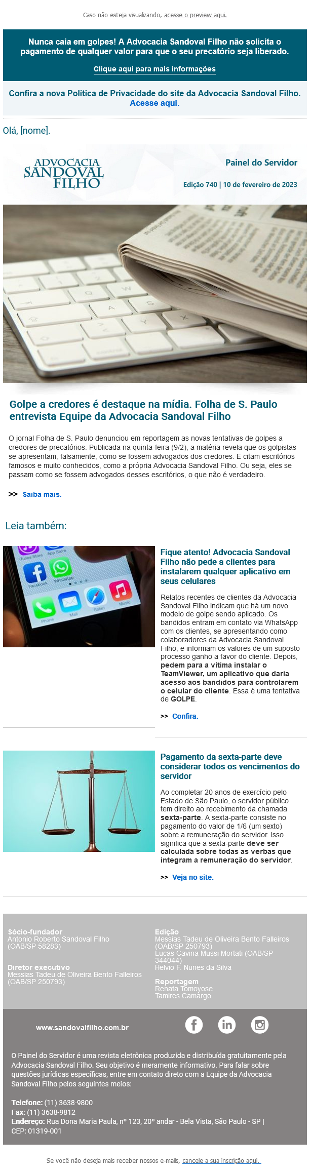 Confira a edição nº 740 do Painel do Servidor, enviada no dia 10 de fevereiro de 2023.