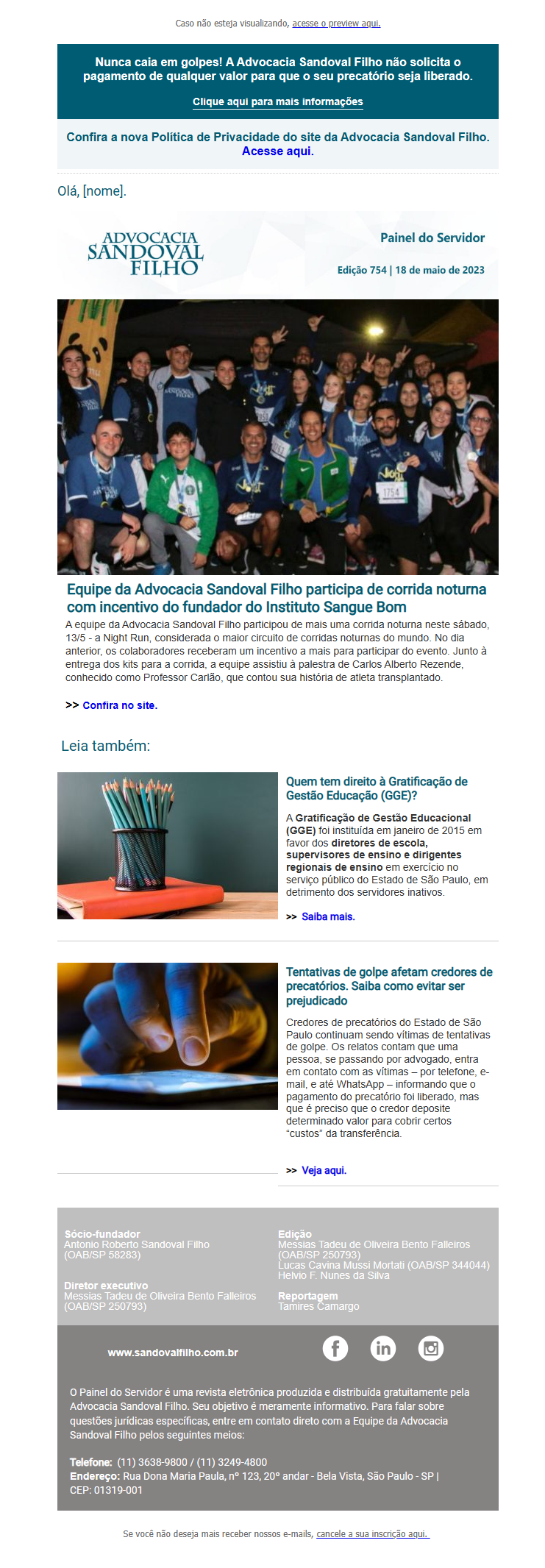 Confira a edição nº 754 do Painel do Servidor, enviada no dia 18 de maio de 2023.