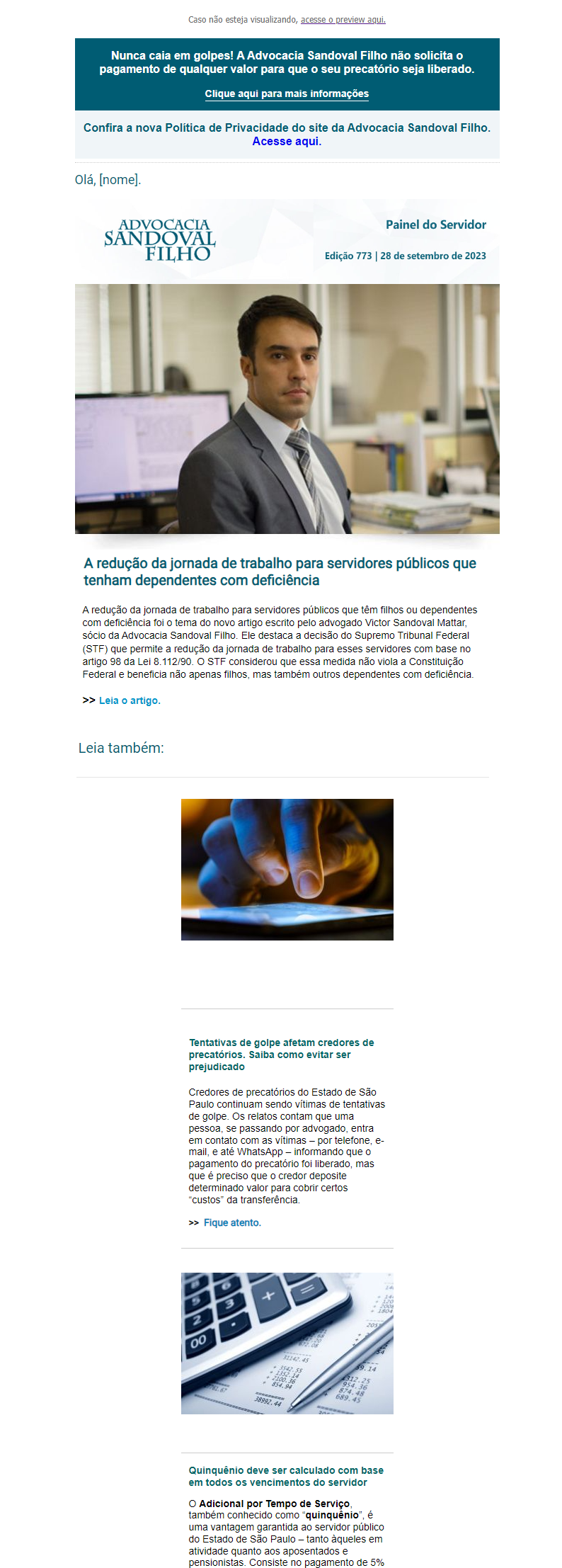 Nunca caia em golpes! A Advocacia Sandoval Filho não solicita o pagamento de qualquer valor para que o seu precatório seja liberado.