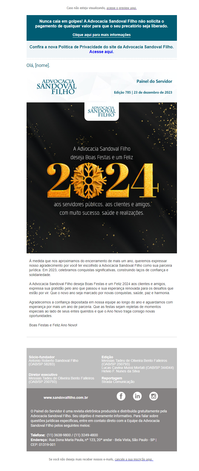 Confira a edição nº 785 do Painel do Servidor, enviada no dia 23 de dezembro de 2023.