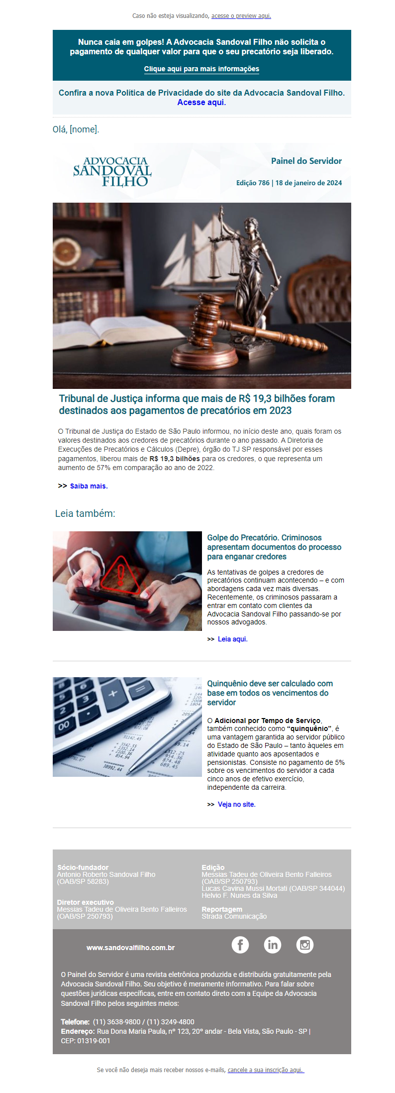 Confira a edição nº 786 do Painel do Servidor, enviada no dia 18 de janeiro de 2024.