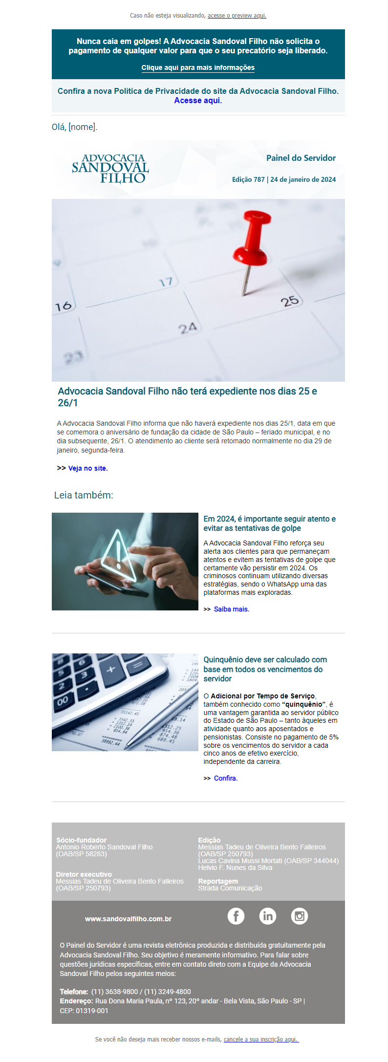 Confira a edição nº 787 do Painel do Servidor, enviada no dia 24 de janeiro de 2024.