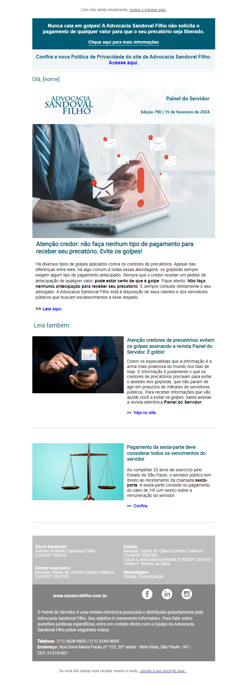 Confira a edição nº 790 do Painel do Servidor, enviada no dia 15 de fevereiro de 2024.