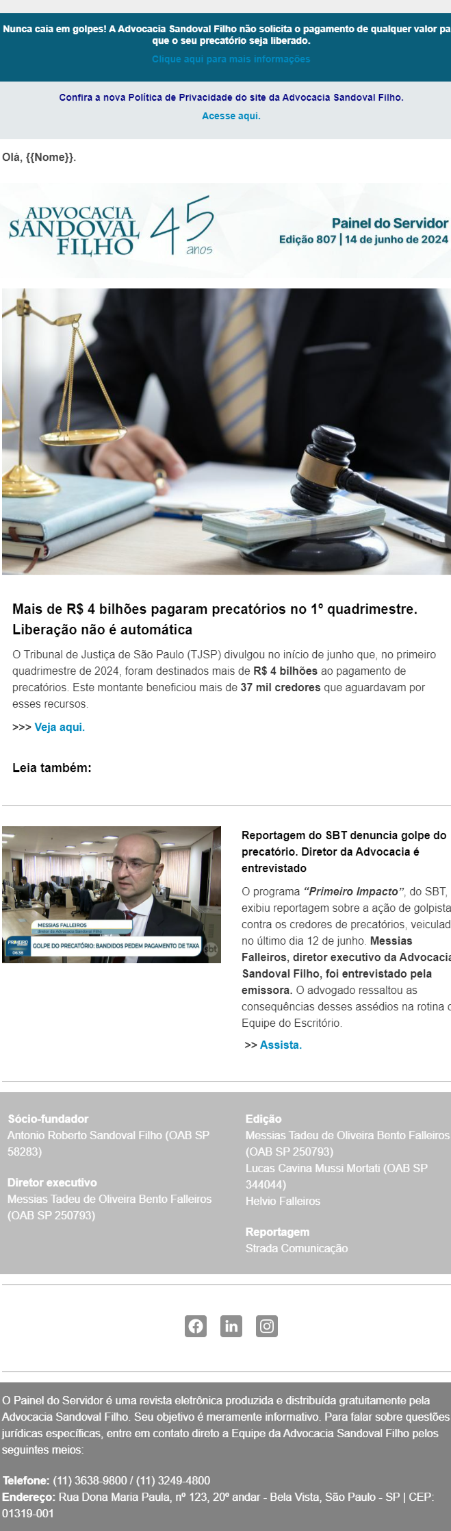 Confira a edição nº 807 do Painel do Servidor, enviada no dia 14 de junho de 2024.