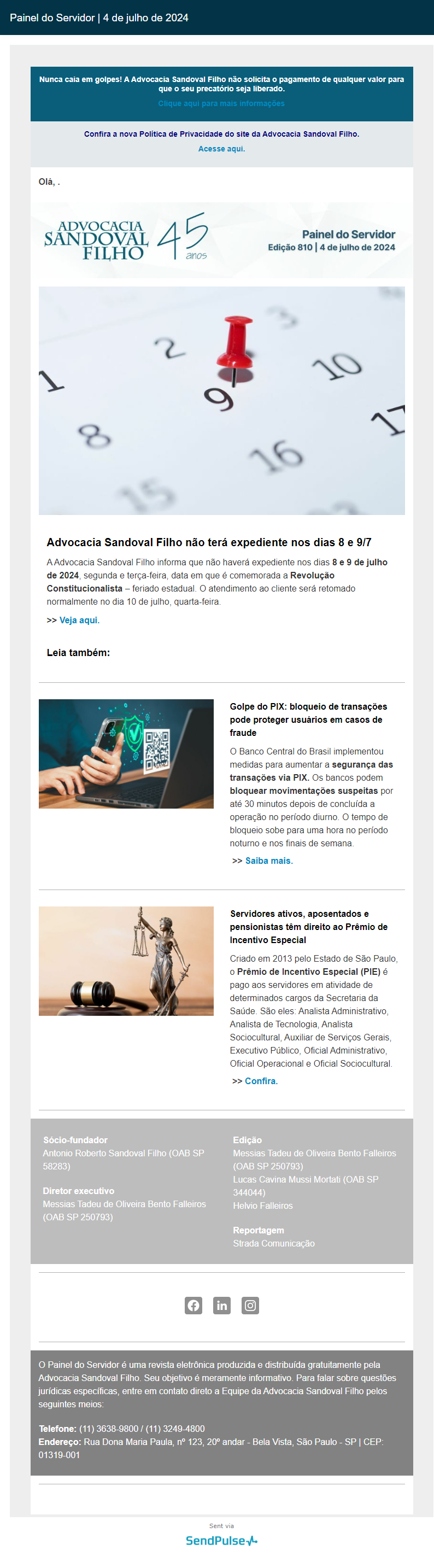 Confira a edição nº 810 do Painel do Servidor, enviada no dia 4 de julho de 2024.