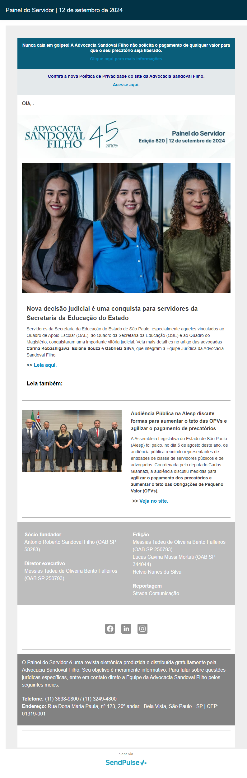 Confira a edição nº 820 do Painel do Servidor, enviada no dia 12 de setembro de 2024.