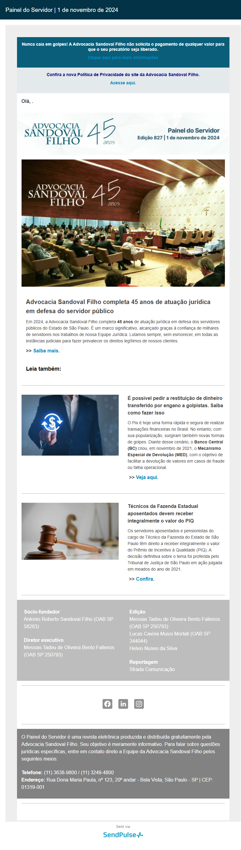 Confira a edição nº 827 do Painel do Servidor, enviada no dia 01 de novembro de 2024.