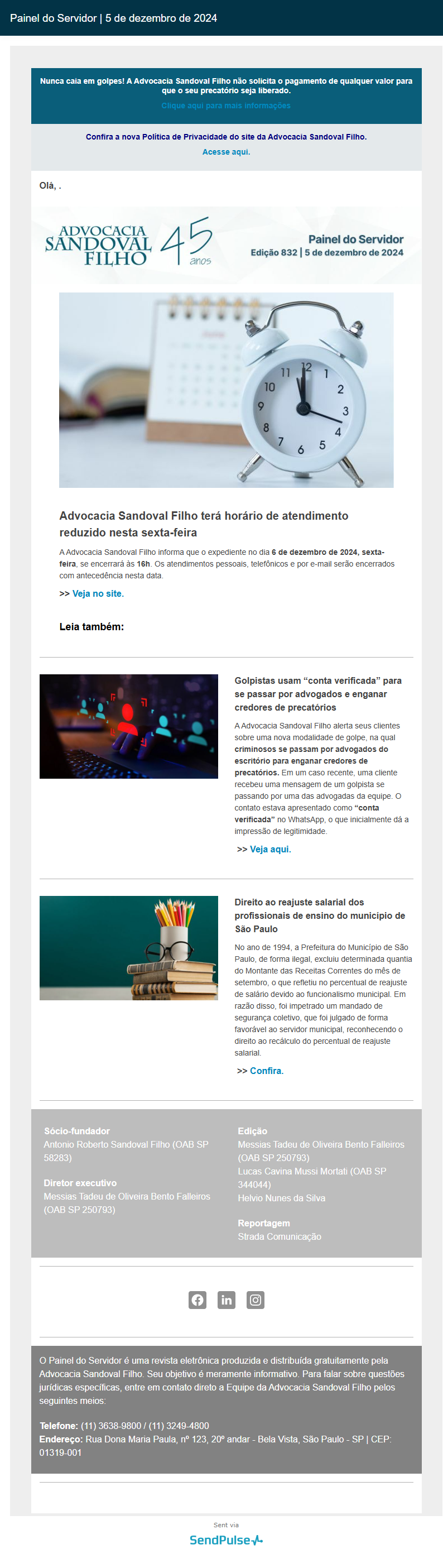 Confira a edição nº 832 do Painel do Servidor, enviada no dia 05 de dezembro de 2024.