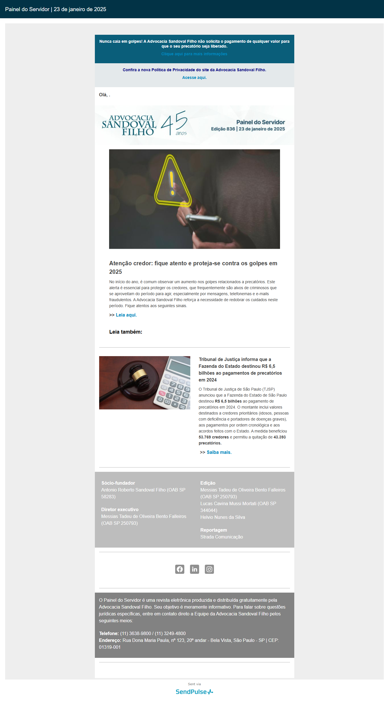 Confira a edição nº 836 do Painel do Servidor, enviada no dia 23 de janeiro de 2025.