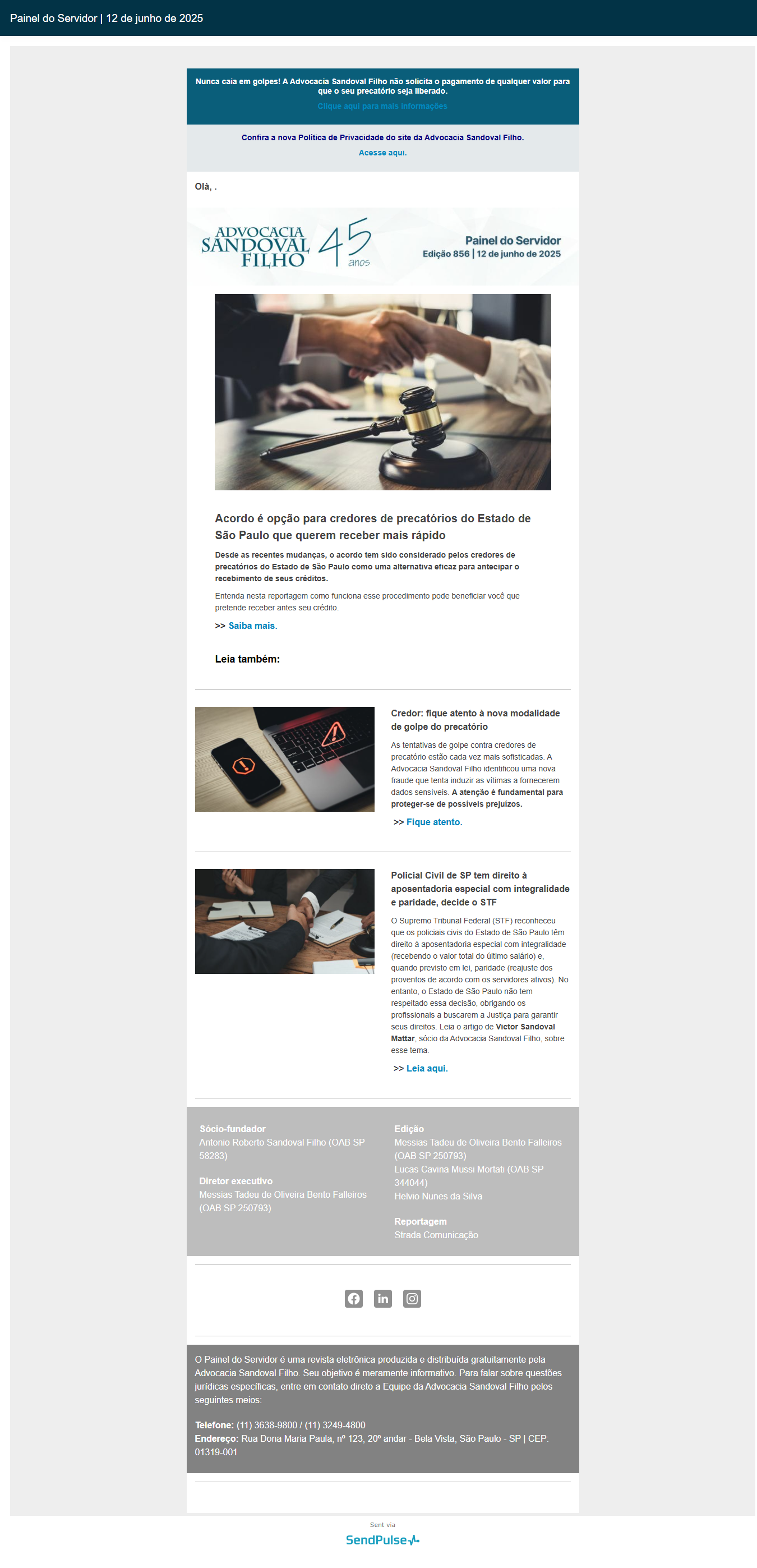 Confira a edição nº 856 do Painel do Servidor, enviada no dia 12 de junho de 2025.