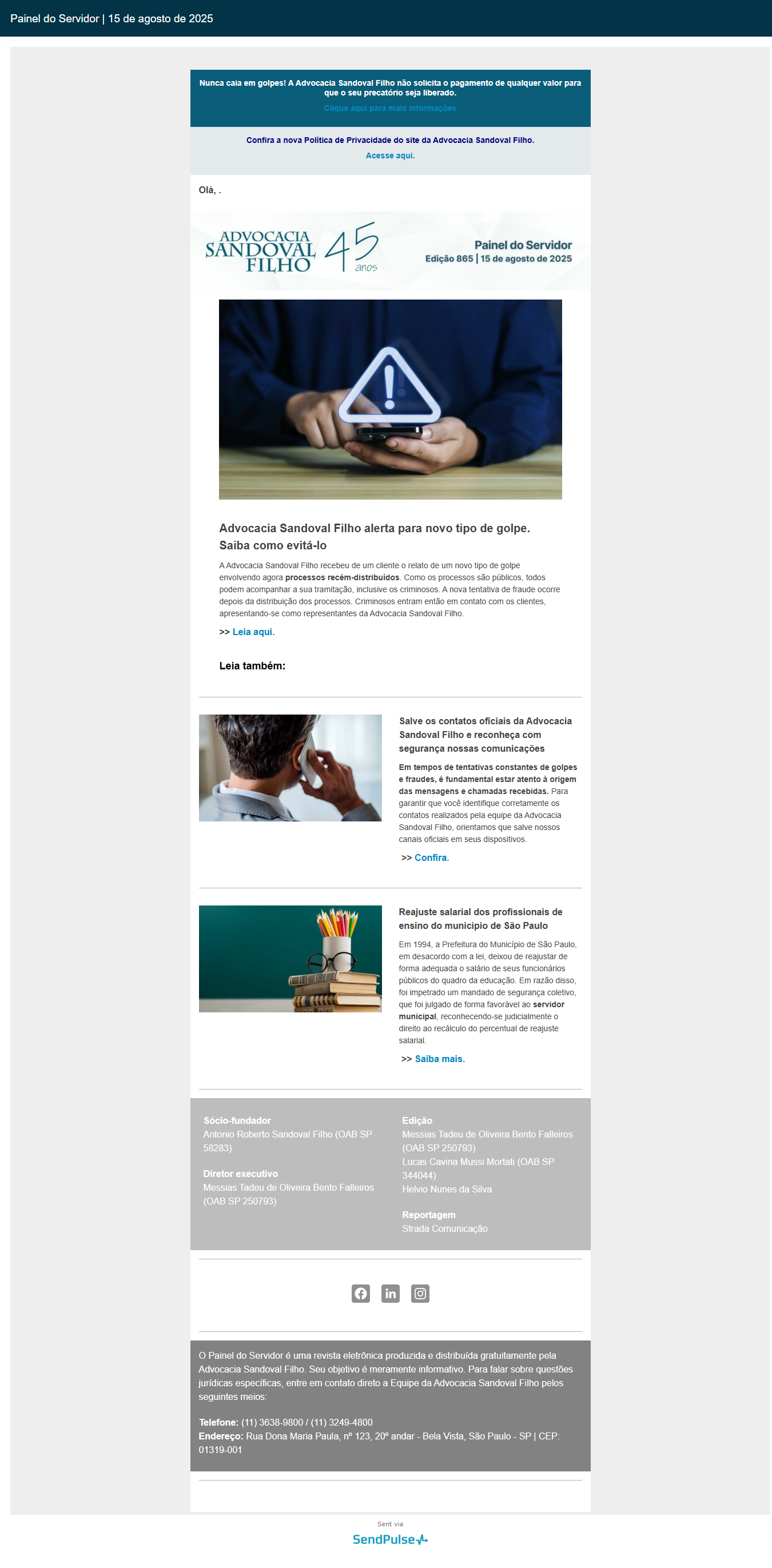 Confira a edição nº 865 do Painel do Servidor, enviada no dia 15 de agosto de 2025.