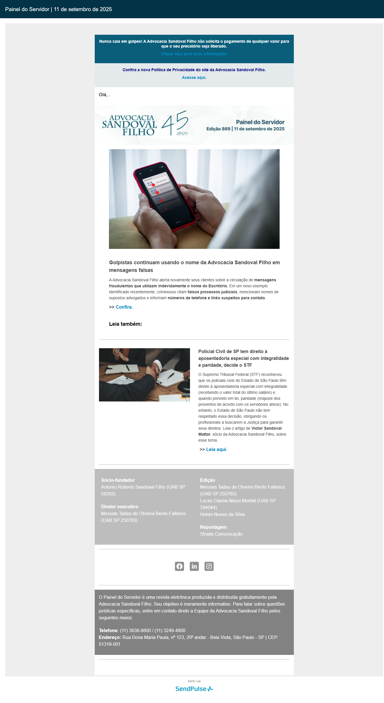 Confira a edição nº 869 do Painel do Servidor, enviada no dia 11 de setembro de 2025.
