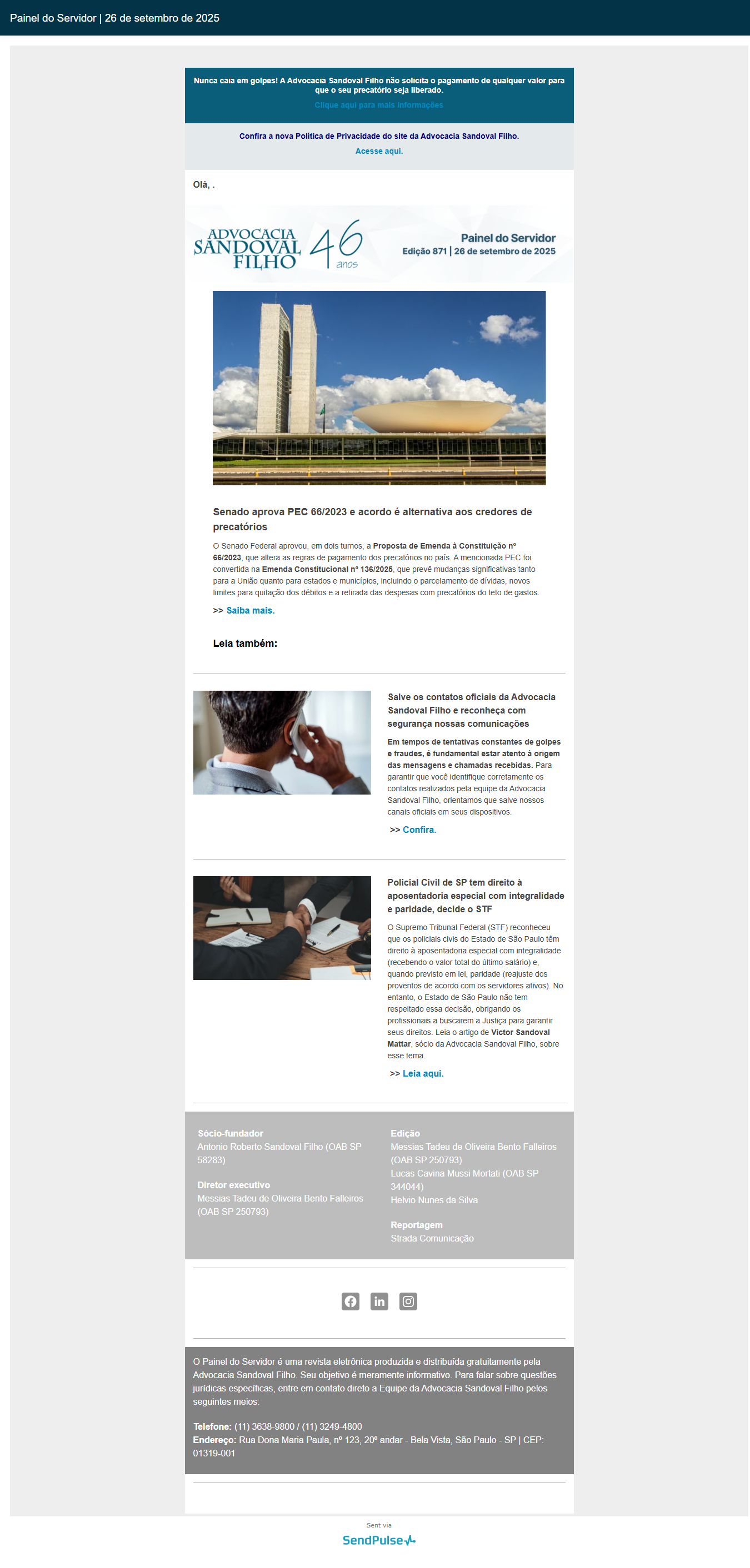 Confira a edição nº 871 do Painel do Servidor, enviada no dia 26 de setembro de 2025.