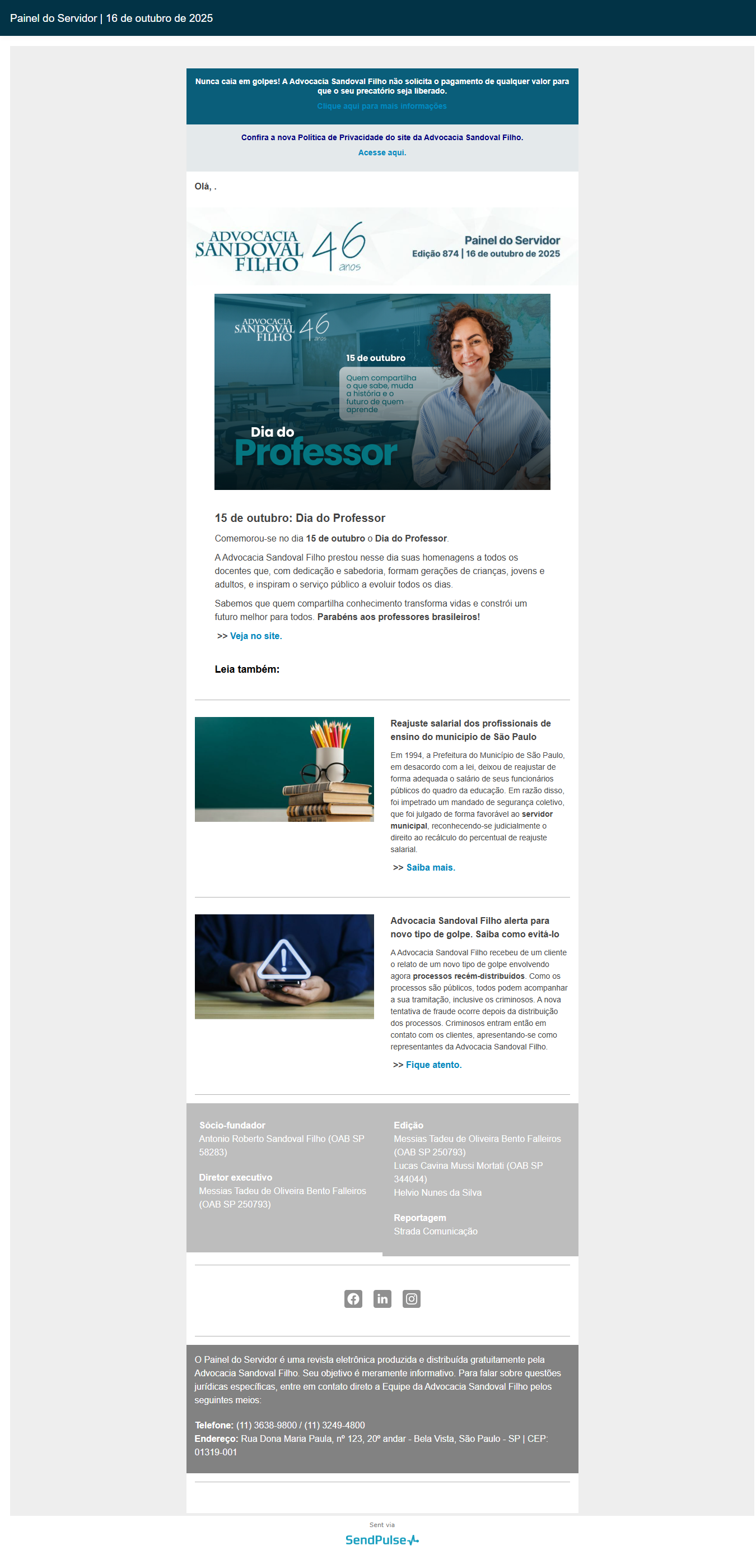 Confira a edição nº 874 do Painel do Servidor, enviada no dia 16 de outubro de 2025.