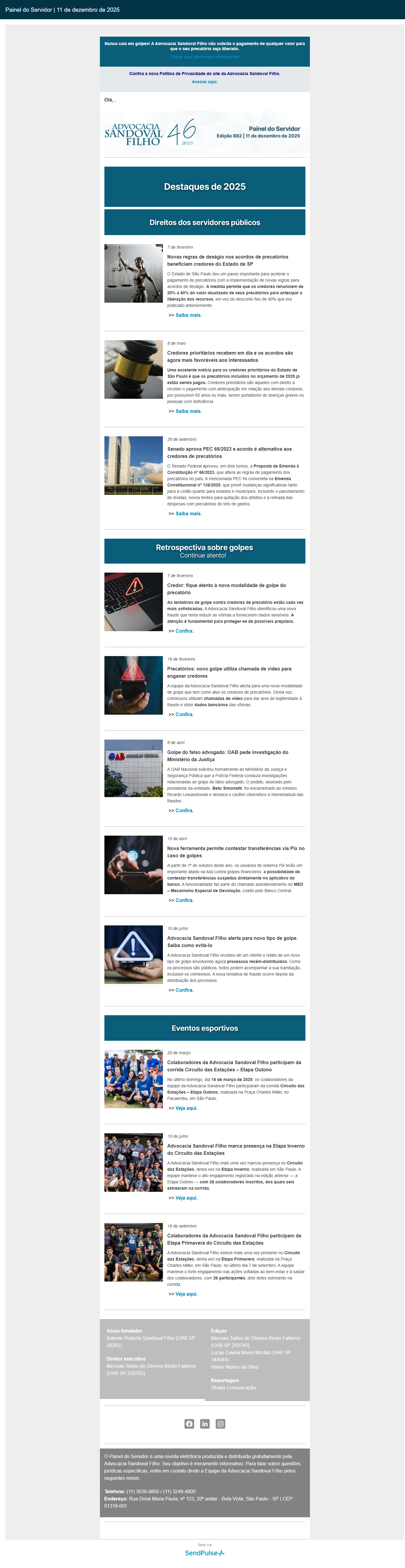 Confira a edição nº 882 do Painel do Servidor, enviada no dia 11 de dezembro de 2025.