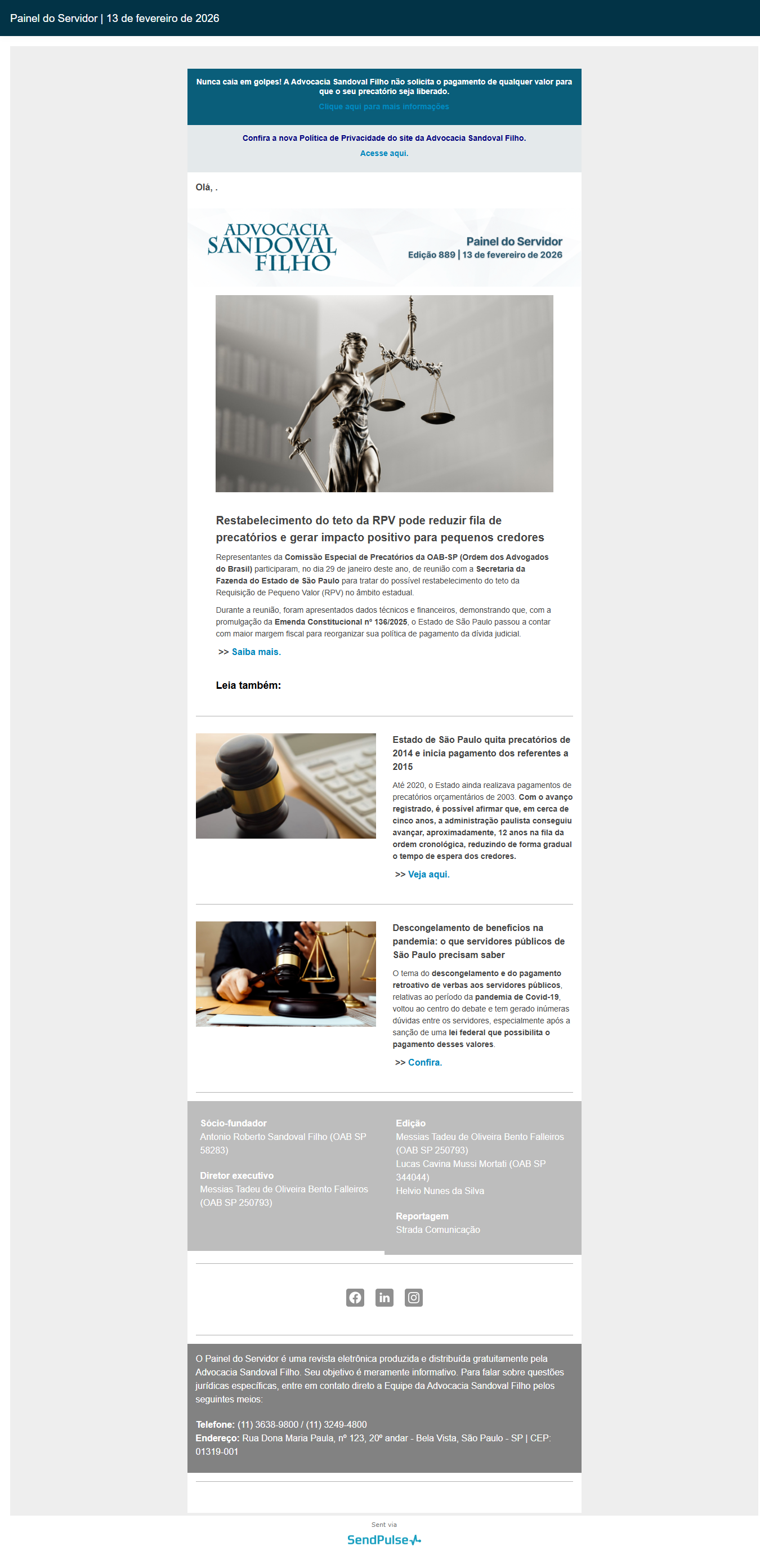 Confira a edição nº 889 do Painel do Servidor, enviada no dia 13 de fevereiro de 2026.